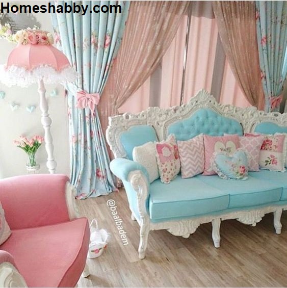 A sofa using pink pastel colors with sky blue can make the living room seem bigger. You can add standing lamp to the corner with a vintage and pretty design.