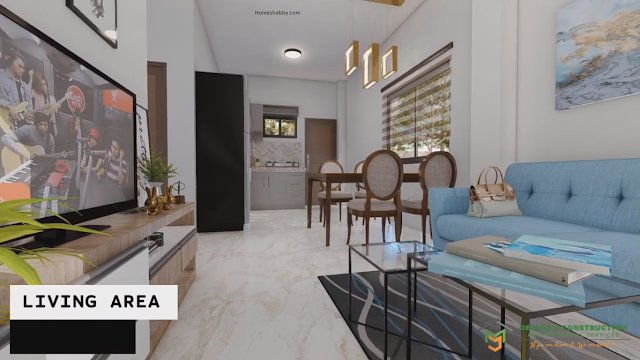 The living room in this 50 sqm diameter house has a simple and beautiful appearance with the right arrangement and selection of interior design will make this living area feel more comfortable and warm. This living area becomes one with the kitchen and dining area.
